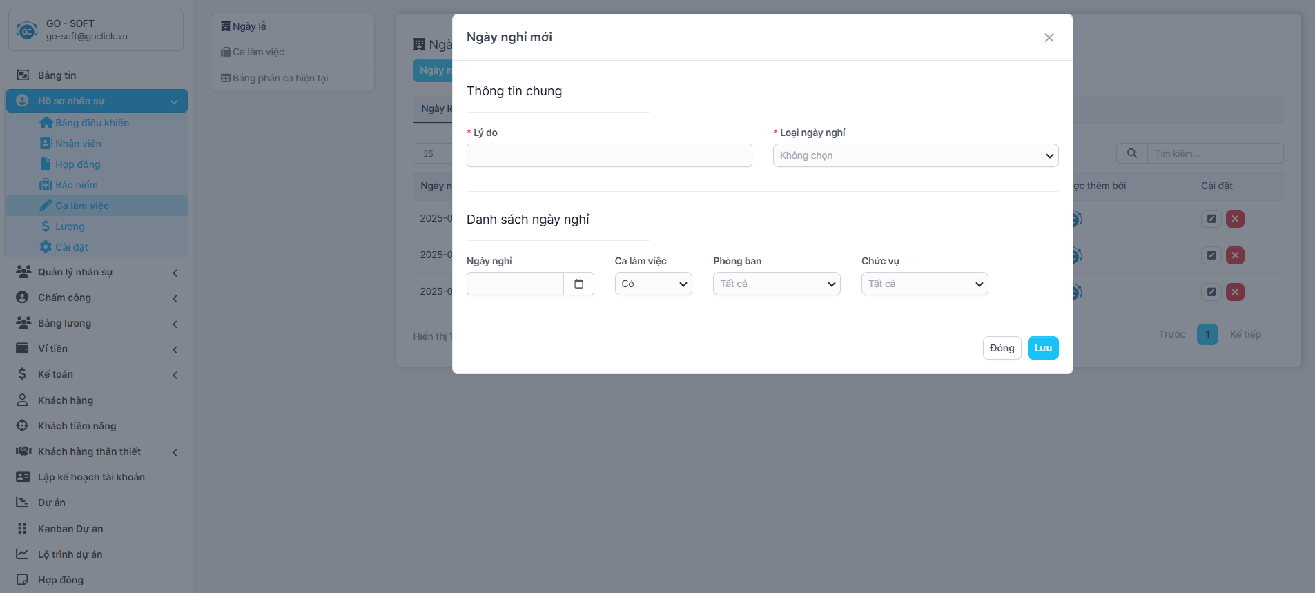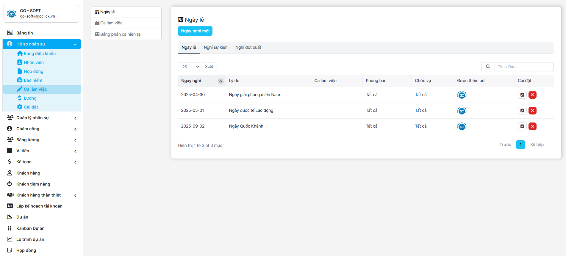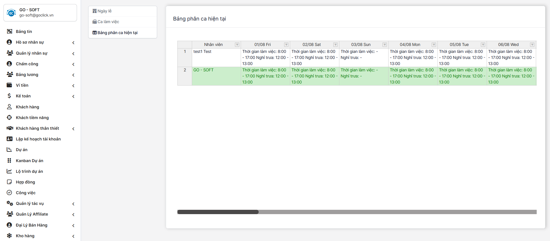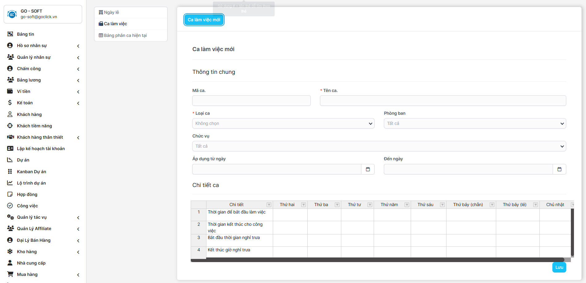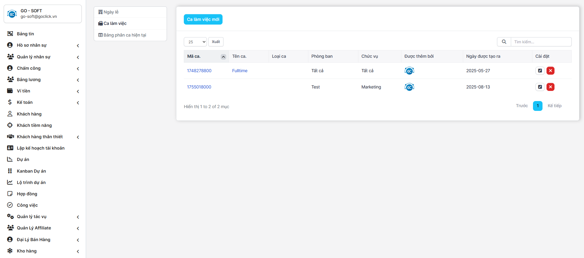 → Quản lý ca làm việc với nhiều dữ liệu có sẵn: