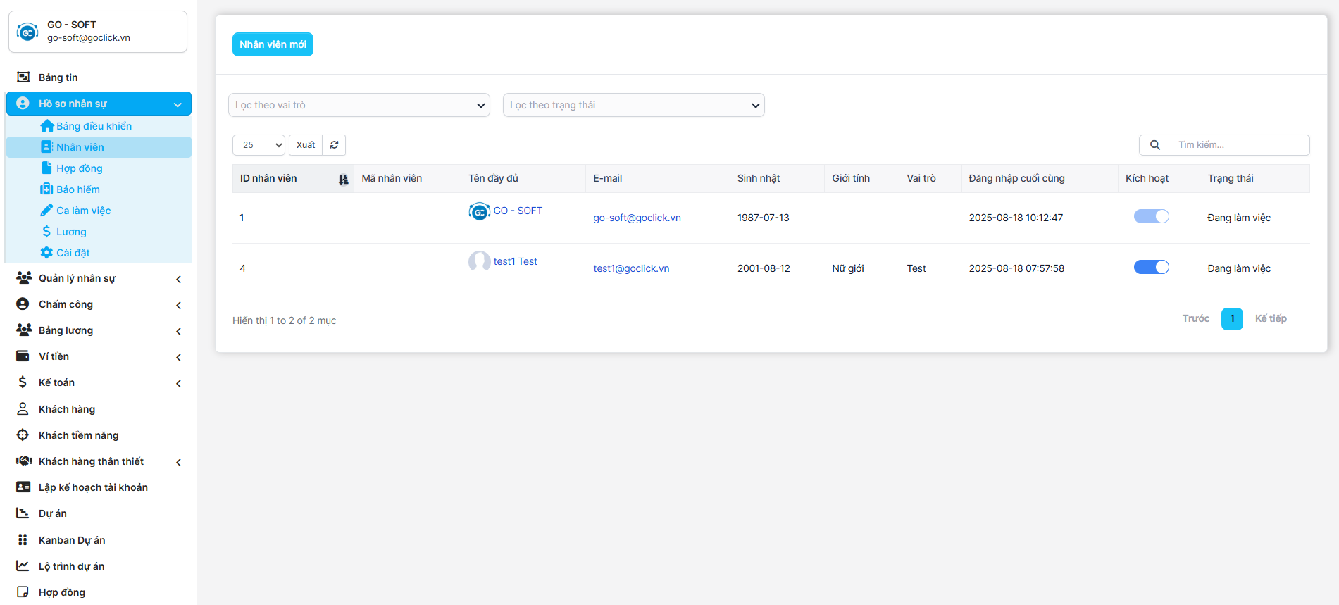 → Quản lý nhân viên với nhiều dữ liệu mới có sẵn: