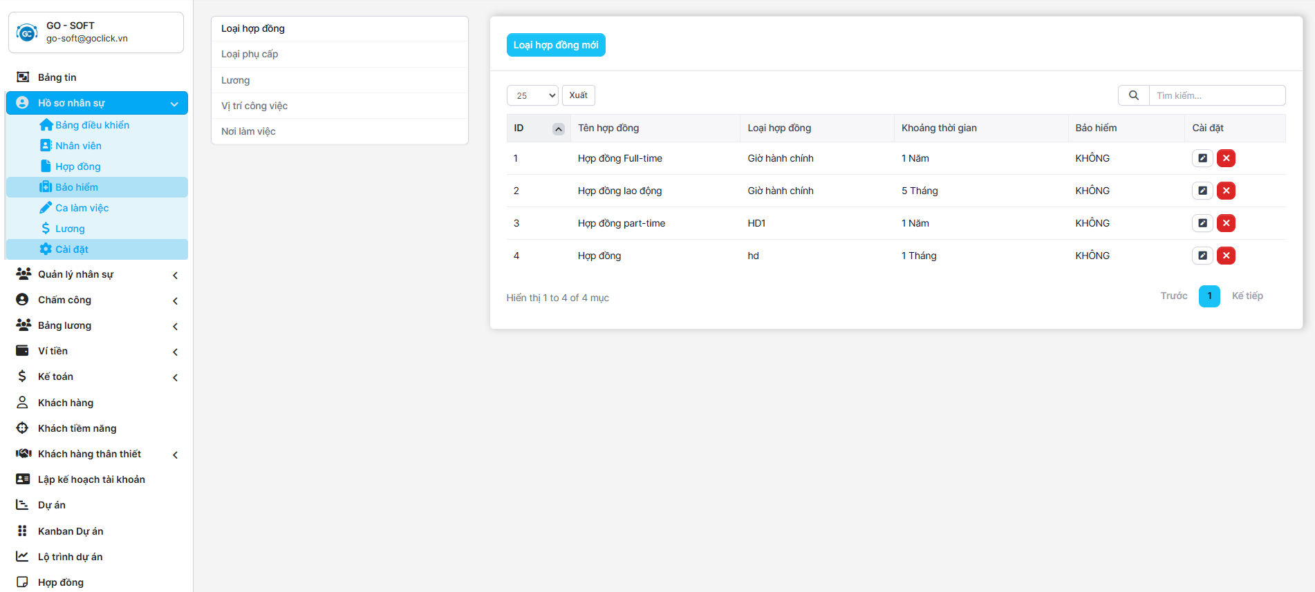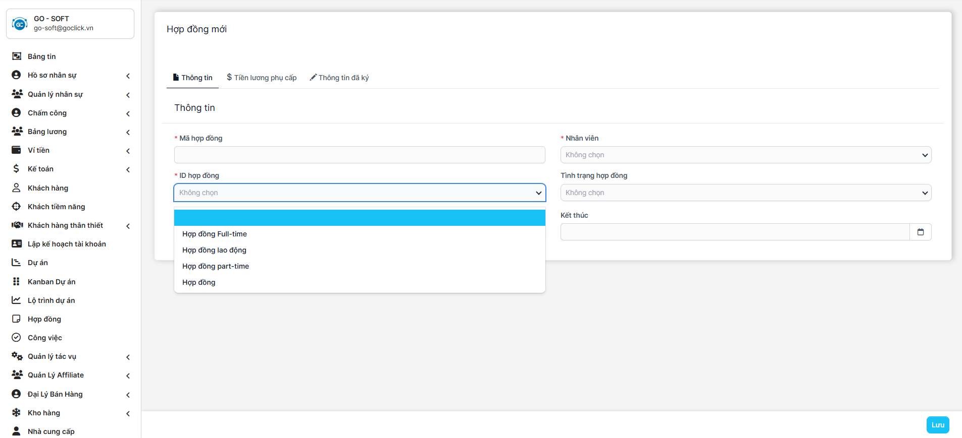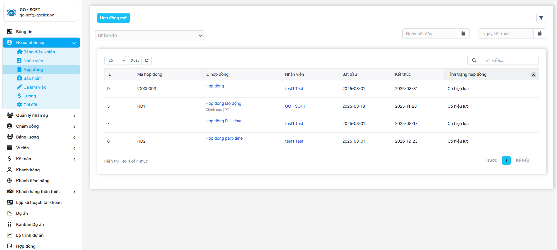 → Quản lý hợp đồng với nhiều dữ liệu có sẵn: