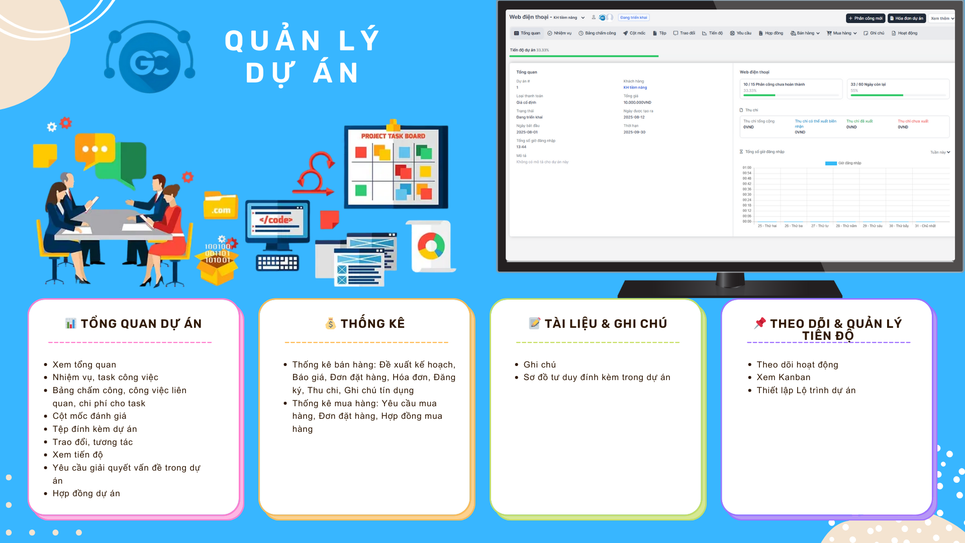 Bảng chấm công, công việc liên quan, chi phí cho task